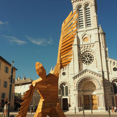 Ici, «Gabrielle l’Archange» le messager, représente un ange ancré dans le sol, qui tend vers le ciel : il symbolise pour moi, l’élévation de la condition de l’Homme. Il tente d’allier les cieux avec l’esprit humain afin que celui-ci ait un esprit plus noble, plus global, plus en lien avec la nature.